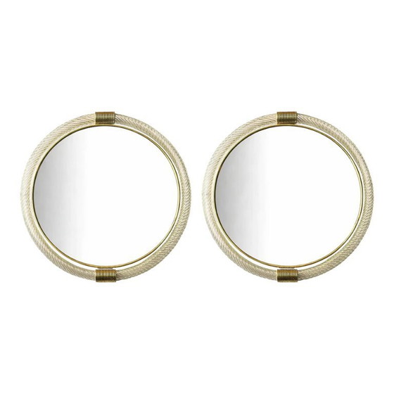 Coppia di specchi da parete in vetro di Murano italiano con foglia d'oro, design veneziano "Torciglione"