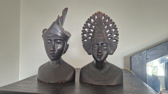 Aggiungi un tocco di fascino esotico ai tuoi interni con questa splendida coppia di sposi in stile Art Déco balinese. Queste statue in legno fatte a mano trasudano eleganza e maestria artigianale, perfette per chi apprezza pezzi decorativi unici.