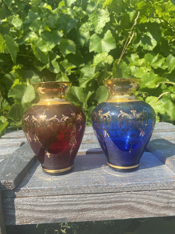 CondizioneEccellenteColoriBlu, Rosso, OroMaterialeVetro di MuranoNumero di articoli2Altezza13 cmLarghezza9 cmProfondità13 cm