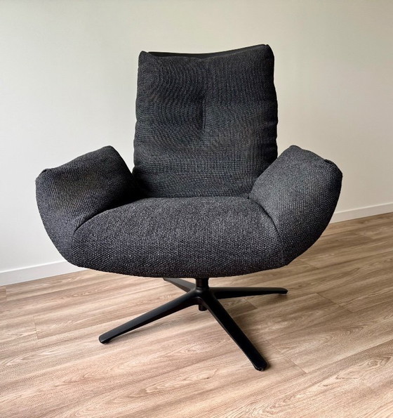 La poltrona COR Cordia Lounge è stata progettata dai designer Jehs & Laub. La poltrona ha lo schienale in pelle e il cuscino in tessuto color antracite. Ha una gamba girevole a quattro piedi in alluminio nero ed è regolabile con un meccanismo di inclinazione. La seduta è come nuova ed è stata acquistata presso Scoonwoon ad Anversa.