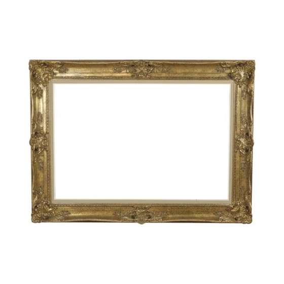 Questa cornice vintage è in ottime condizioni, con lievi segni d'uso e del tempo coerenti con l'età e il materiale. Presenta alcune crepe superficiali dovute all'età sugli angoli e sulla decorazione a foglie d'acanto, e lievi segni lungo il bordo; si prega di visionare le foto per maggiori dettagli!