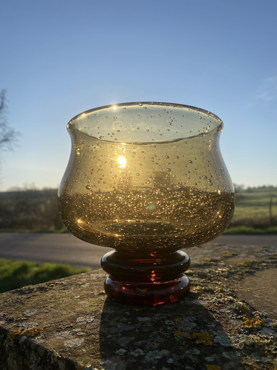 Questa squisita ciotola vintage di La Rochere, realizzata negli anni Cinquanta, è uno straordinario esempio di arte vetraria. Il suo design in vetro soffiato e con bolle offre una consistenza e un fascino visivo unici, catturando la luce con una brillantezza e una trasparenza accattivanti. Questo pezzo non è solo raro, ma è anche una testimonianza della raffinata maestria artigianale dell'epoca.