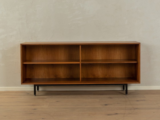 Meravigliosa credenza degli anni '60. Corpo in impiallacciato noce con due ripiani e nuovi piedini quadrati in acciaio nero. Prodotto in Germania, produttore: Lothar Wegner. Rif. 2307041