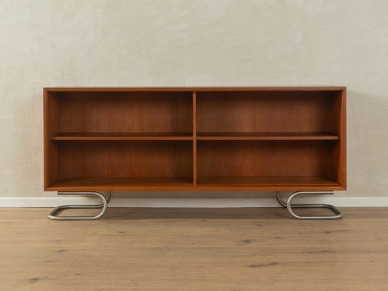 Credenza classica degli anni '60 di Lothar Wegner. Corpo di alta qualità in impiallacciatura di teak con due ripiani e nuovi piedi in acciaio inox dal design Bauhaus. Prodotto in Germania, produttore: Lothar Wegner.