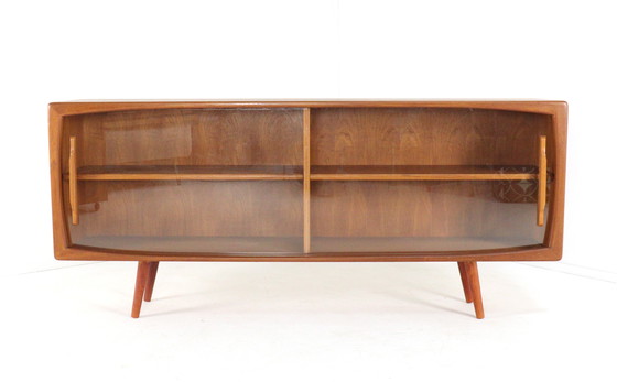Questa credenza Dyrlund è un esempio da manuale di design danese con un tocco di metà secolo, realizzata in teak di alta qualità e impiallacciatura pregiata. Dyrlund, rinomato produttore, è noto per la sua tradizionale artigianalità e l'attenzione ai dettagli. L'uso del teak enfatizza la durevolezza e il carattere caldo caratteristici del design danese. Questo pezzo combina eleganza e funzionalità, con ante scorrevoli in vetro e raffinate maniglie in teak. I ripiani interni regolabili offrono una pratica flessibilità, mentre le gambe affusolate e angolate forniscono una base elegante e stabilità. Il design danese è riconosciuto a livello mondiale per la sua estetica minimalista e senza tempo, che coniuga perfettamente bellezza e praticità. Questa credenza aggiunge un tocco di calore ed è facile da integrare negli interni moderni. Il suo valore decorativo è elevato: attira l'attenzione con discrezione senza essere invadente, offrendo una soluzione di contenimento versatile. Un pezzo Dyrlund simboleggia la vera qualità danese ed è un investimento sia in funzionalità che in stile, adatto a qualsiasi interno contemporaneo. Le condizioni sono molto buone, senza graffi o danni importanti, pronto all'uso e pronto per molti anni di godimento. Paese di origine: Danimarca Produttore: Dyrlund Altezza: 70 cm Larghezza: 159,5 cm Profondità: 32 cm