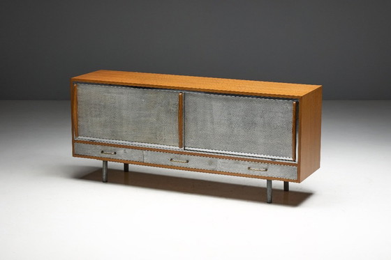 Credenza Mid-Century Modern con facciata in metallo martellato, Francia, anni '60