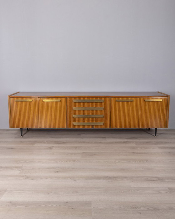 Credenza sideboard vintage anni 50 in legno e ottone dorato design Italiano