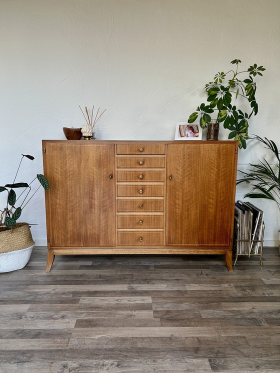 Scopri questa elegante credenza vintage in teak di WK Möbel, risalente agli anni '60. Vanta un'eccezionale fattura artigianale e le superfici sono state recentemente levigate e oliate. Perfetta per gli amanti dell'arredamento classico, offre ampio spazio contenitivo e si adatta perfettamente a qualsiasi casa elegante.