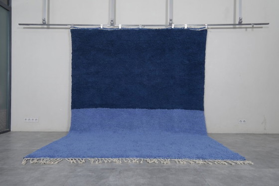 Immerse your living space in the rich cultural heritage of Morocco with this exquisite custom Moroccan rug. Handcrafted with genuine lamb wool, this Beni Ourain rug showcases the traditional Berber craftsmanship that is both timeless and elegant. The deep blue hues of the rug create a serene and calming atmosphere, making it a perfect addition to any room seeking a touch of sophistication and warmth.
