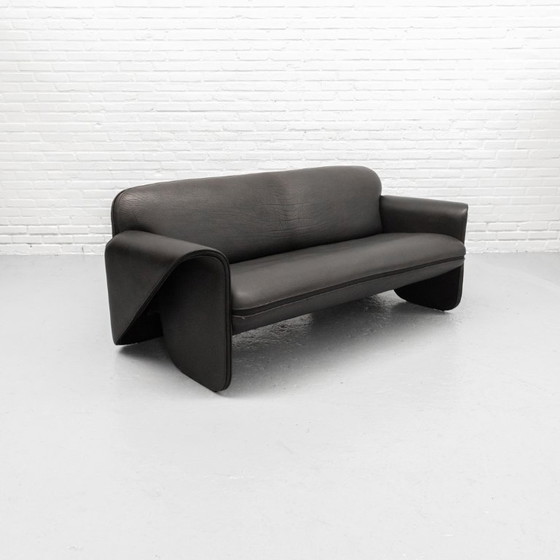 Disegnato da Gerd Lange nel 1978, il divano a tre posti De Sede DS-125 è un esempio di eccellenza e artigianalità svizzera. Realizzato in pelle nera, spessa 3-5 mm, con le caratteristiche cerniere come dettaglio decorativo.