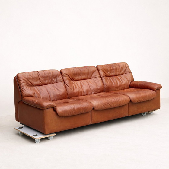 Il DS66 è un divano/poltrona iconico del marchio svizzero di design di punta De Sede, prodotto negli anni '70. Questo divano è completamente rivestito in spessa pelle di bufalo di alta qualità, che sviluppa una ricca patina nel tempo, conferendo a ogni pezzo un carattere unico.