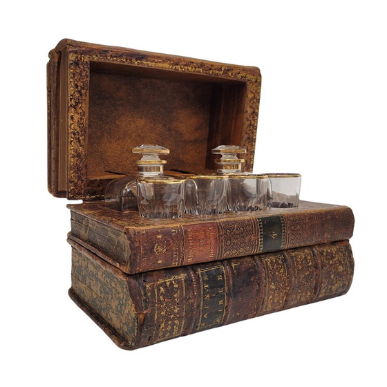 Decanter segreto, vetro tagliato, pelle goffrata, legno, FFS XIX - Francia Tipologia: Decanter Materiali: Vetro tagliato, pelle goffrata, legno Periodo: Fine XIX secolo Paese: Francia Buone condizioni in base all'età e all'uso Dimensioni chiuso: 15 x 20,5 x 14 cm. Dimensioni aperto: 22 x 20,5 x 20 cm. Dimensioni bottiglia (2): 11 x 7 x 4 cm. Dimensioni bicchiere (4): 5 x 3,5 x 3,5 cm. Eccezionale decanter segreto mimetizzato in una pila di libri con bottiglie e bicchieri, della Francia di fine XIX secolo. Assume la forma ingegnosa di una pila di vecchi libri, accuratamente rilegati in pelle dorata con titoli falsi come "Sainte Bible". Più che un semplice oggetto utilitaristico, è un pezzo pieno di simbolismo, destinato alla discrezione, al gioco ottico, alla raffinatezza e all'ingegnosità dell'epoca. Aprendo il falso dorso superiore si scopre uno scomparto segreto che ospita due bottiglie di liquore in cristallo molato con tappi originali e quattro piccoli bicchieri con bordo finemente dorato. La disposizione interna segue la tradizione delle cosiddette "caves à liqueur" o "bureaus de dames", molto apprezzate nei salotti aristocratici e negli ambienti raffinati del XIX secolo. Questo tipo di decanter non funge solo da oggetto d'uso, ma anche da simbolo di status culturale e buon gusto. La sua forma a libro rimanda direttamente al mondo della conoscenza, del segreto e della raffinatezza intellettuale, rendendolo un pezzo particolarmente attraente per collezionisti e arredatori d'interni con una sensibilità storica. La spedizione del prodotto sarà a carico dell'acquirente in base a dimensioni, peso e destinazione. Vi contatteremo per organizzare la consegna e concordare un preventivo. Le spese di spedizione includono l'imballaggio professionale personalizzato e la spedizione personalizzata, con numero di tracciamento e garanzia. L'acquirente è responsabile del pagamento di eventuali dazi doganali e tasse associate nel paese di destinazione, se applicabili. Si prega di notare che il venditore declina ogni responsabilità per eventuali oneri doganali, in quanto questi vengono riscossi nel paese di destinazione e l'importo dovuto è determinato dall'ufficio doganale di quel paese. Qualora sia richiesto un permesso di esportazione, i costi sono a carico dell'acquirente. Il costo dipende progressivamente dal valore dell'opera d'arte da esportare.