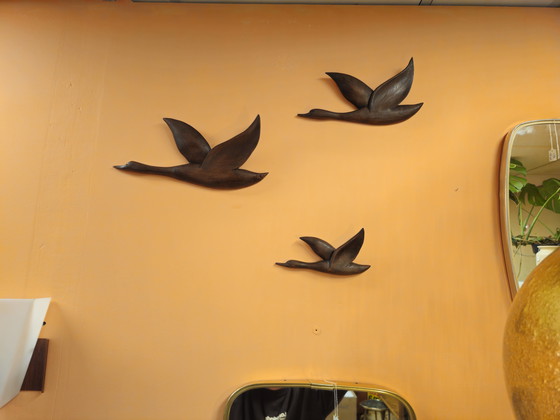 Aggiungi un tocco di natura ed eleganza ai tuoi interni con questo splendido set di uccelli da parete in teak. Questa decorazione vintage è un'aggiunta perfetta a qualsiasi stanza, con i toni caldi del legno che creano un'atmosfera accogliente e invitante. Le forme slanciate degli uccelli trasmettono un senso di movimento e libertà, aggiungendo un elemento dinamico alla tua parete.