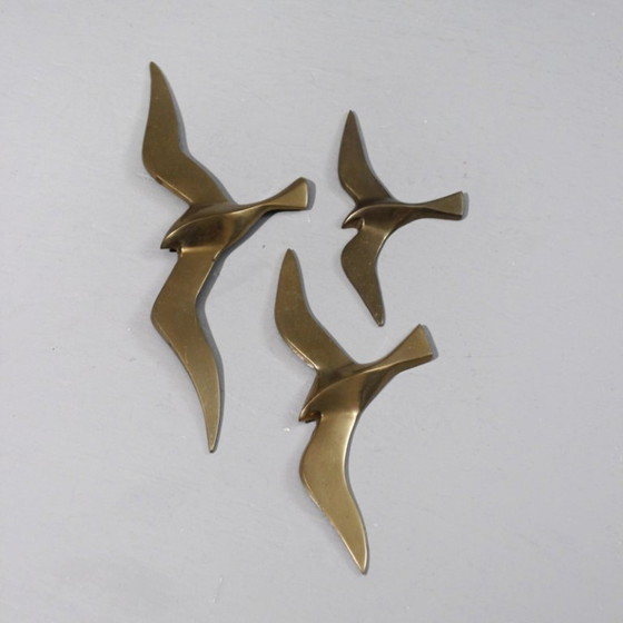 Set di tre rondini vintage in ottone massiccio per decorazione da parete (appese sul retro), design 1960 circa.