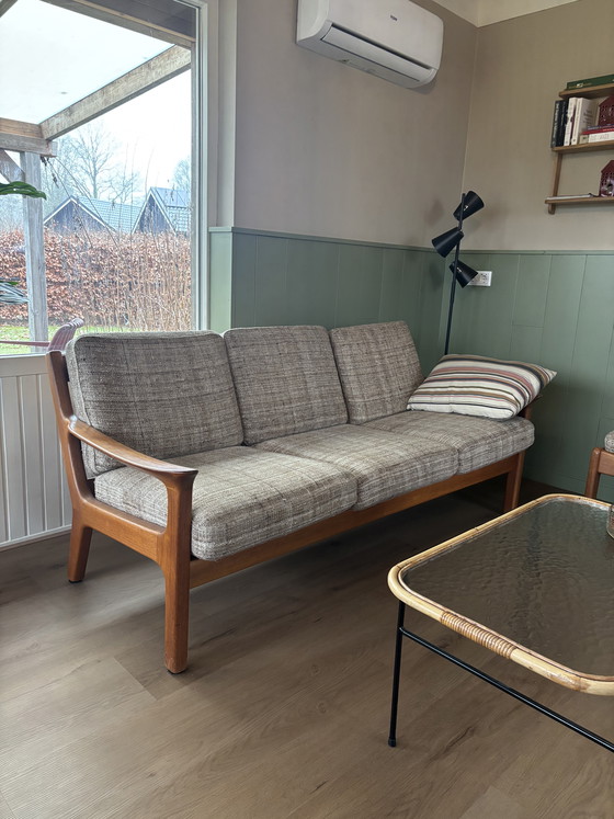 Dit is een vintage Scandinavische 4 delige huiskamerset, ontworpen door Juul Kristensen in de jaren 60. De bank is een klassiek voorbeeld van Deens mid-century modern design.