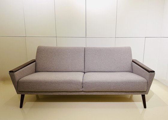 Divano DESIGNERS GUILD "WEDGE". Un modello ispiratore con linee nette e angolari che ricordano i mobili degli anni '50 e '60. I braccioli affusolati con bordi leggermente curvi e le gambe divaricate creano un mix di superfici sagomate che possono essere apprezzate da tutte le angolazioni. Le condizioni generali sono buone, la seduta è liscia, senza peli ma con alcune macchie, il legno è visibilmente in buone condizioni e c'è un piccolo danno angolare nell'angolo superiore sinistro del retro del divano (vedi foto).