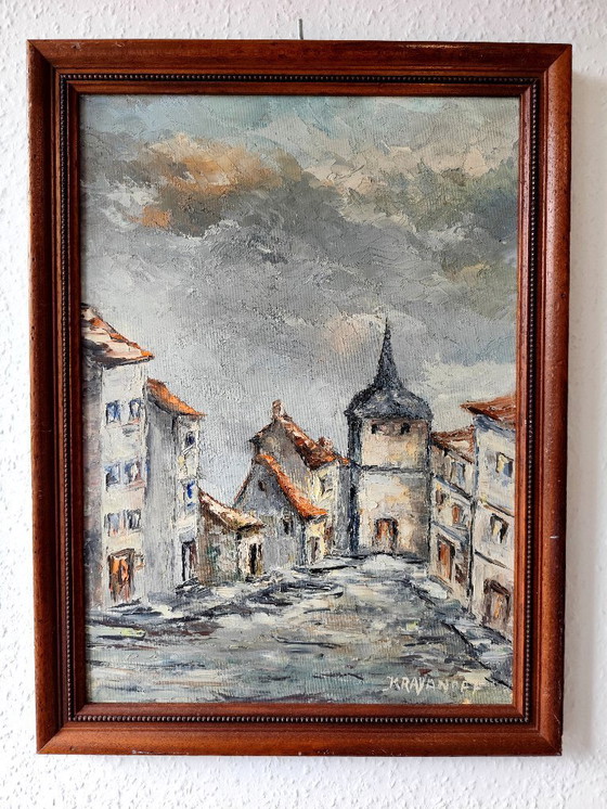 Dipinto ad olio originale - Villaggio francese 1979 Charles Krayanoff firmato