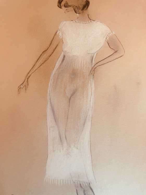 Scoprite questo magnifico dipinto firmato, che raffigura il ritratto di una donna di rara eleganza. Intitolato "Trasparenza", questo disegno cattura la delicatezza e la sottigliezza di una silhouette femminile, avvolta in un abito fluente che evoca grazia e leggerezza. Perfetto per aggiungere un tocco di eleganza e raffinatezza alla vostra casa, quest'opera d'arte conquisterà sicuramente gli amanti della bellezza senza tempo.