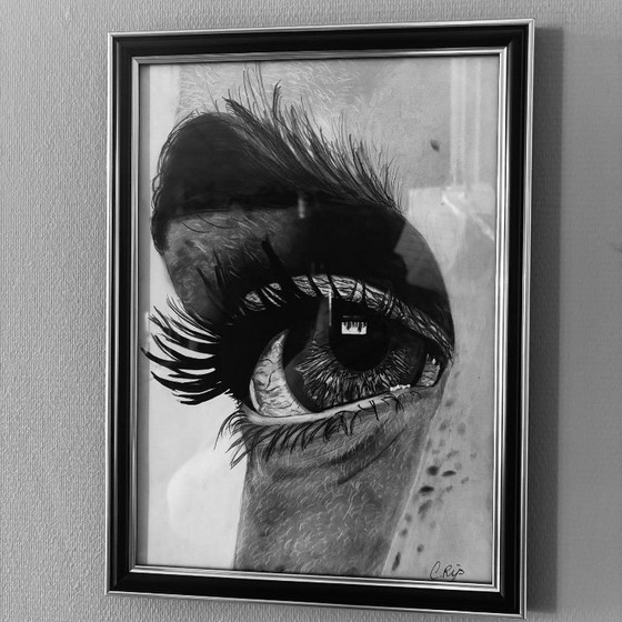 Questo squisito disegno di un occhio cattura i dettagli intricati e la profondità dell'espressione umana, offrendo un punto focale accattivante per qualsiasi ambiente. Realizzato in un suggestivo bianco e nero, l'opera testimonia l'abilità e la cura dei dettagli dell'artista.