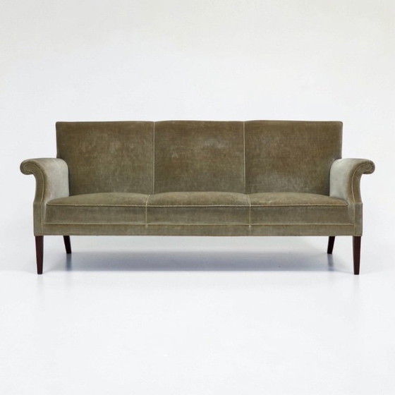 Divano a 3 posti danese degli anni '60, in velluto verde chiaro.