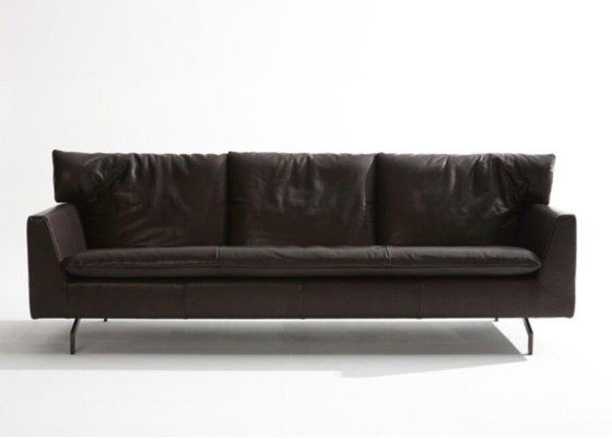 Bellissimo divano a 3 posti di Bert Plantagie, modello Kameo. Il materiale è pelle di bufalo opaca color marrone scuro. Gambe in bronzo. Il divano ha 6 anni e viene venduto per acquisto di un divano più grande. Fattura d'acquisto originale disponibile.
