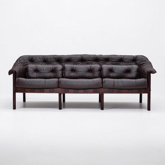 Divano a 3 posti in stile scandinavo degli anni '70, disegnato da Arne Norell e rivestito in pelle.