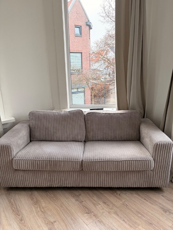 Divano a due posti Curduroy grigio chiaro in ottime condizioni. Il divano è stato utilizzato solo per un anno e non mostra praticamente alcun segno di usura.