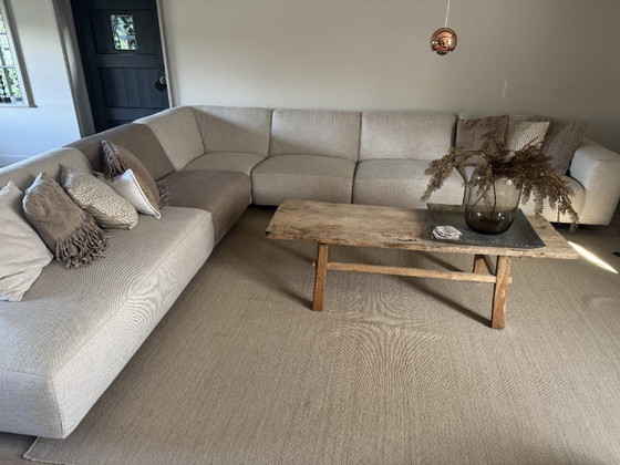 Questo divano e la poltrona separata sono davvero bellissimi e senza una sola macchia o altro. La poltrona separata può anche essere collegata al divano tramite un sistema a scatto sotto la seduta, rendendolo ancora più grande. È caratterizzato da un bellissimo tessuto grigio/beige con una sezione in pregiata pelle. Il divano può essere assemblato in qualsiasi ordine. I singoli elementi possono essere uniti individualmente a scatto nella parte inferiore, rendendoli facili da trasportare. Le sedute sono robuste, così come lo schienale, che è comodamente alto. In breve, un divano comodo. Vendiamo questo divano perché abbiamo acquistato la casa con tutto il suo contenuto, ma abbiamo ancora un divano tutto nostro.