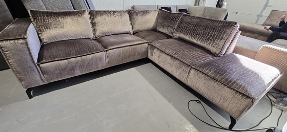 Scopri il massimo del comfort e dello stile con questo divano angolare in velluto effetto coccodrillo color champagne. Grazie alla sua raffinata texture e al morbido rivestimento vellutato, questo divano emana un'aura di lusso, perfetta per un interno moderno.