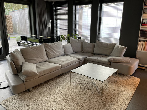 Divano angolare Natuzzi Opus. Pelle (Phoenix) + tessuto (Academy = grigio chiaro). Dimensioni circa 326 cm x 285 cm. Prezzo al dettaglio: €7.895. In ottime condizioni. Le fodere dei cuscini sono lavabili in lavatrice.