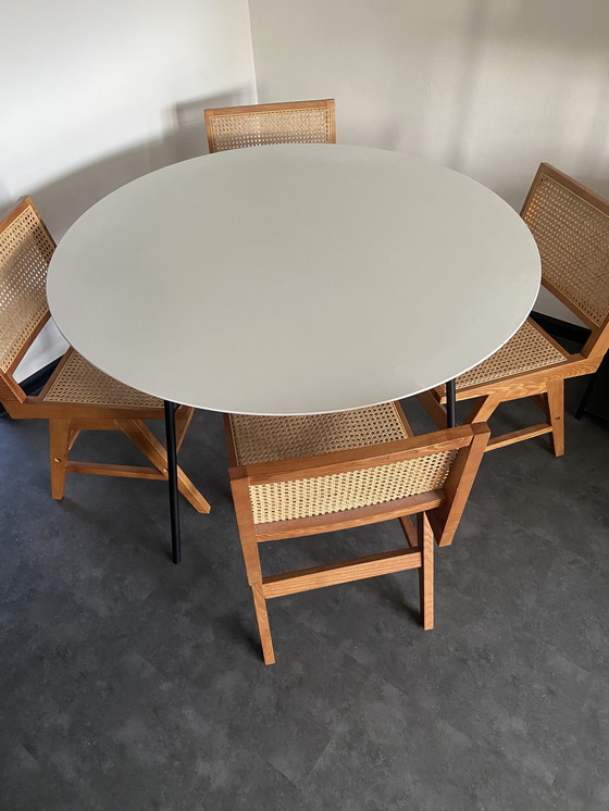 Vi presentiamo un sofisticato set da pranzo dell'apprezzata Sofa Company, caratterizzato da un moderno tavolo rotondo abbinato alle eleganti sedie Sklum. Questo insieme è progettato per elevare la vostra esperienza culinaria con la sua estetica elegante e contemporanea.