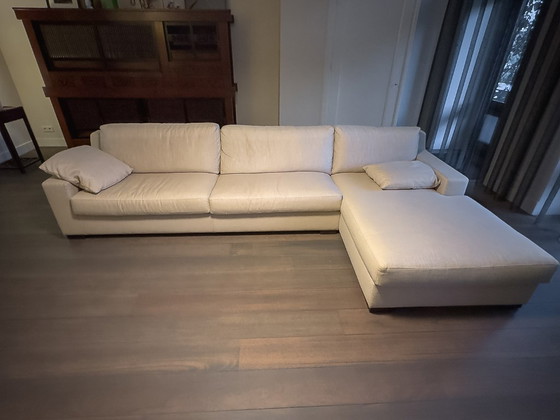 Divano angolare a 4-5 posti molto spazioso e confortevole di Bielefelder Werstaetten. La sezione lounge può essere posizionata separatamente. Include 3 cuscini estraibili.