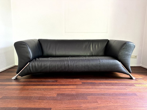 Divano di design a 3 posti Rolf Benz 322 Club Sofa in pelle nera
