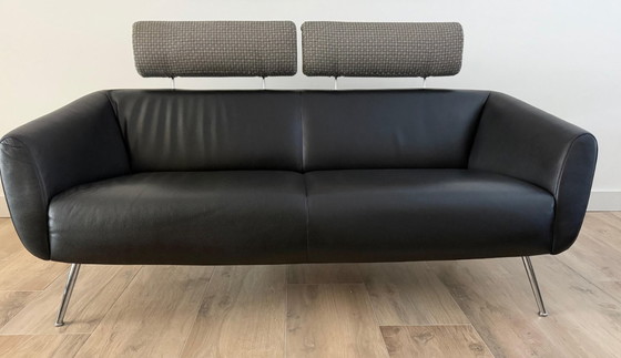 Elegante divano di design Leolux in ottime condizioni, rivestito in lussuosa pelle nera dalle linee moderne ed eleganti.