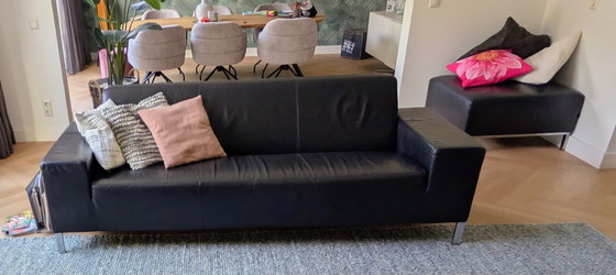 Scopri l'eleganza senza tempo del divano e del pouf Gelderland 6511, un complemento perfetto per qualsiasi interno moderno. Rivestito in pregiata pelle nera, questo set coniuga stile e comfort. La base cromata aggiunge un tocco di moderna raffinatezza, rendendolo una scelta versatile per una varietà di stili d'interni.