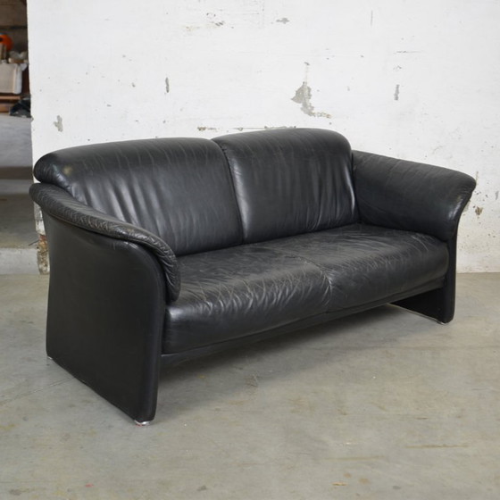 Questo elegante divano a due posti in pelle offre una seduta confortevole e un look senza tempo. La pelle nera aggiunge un tocco di eleganza a qualsiasi ambiente.