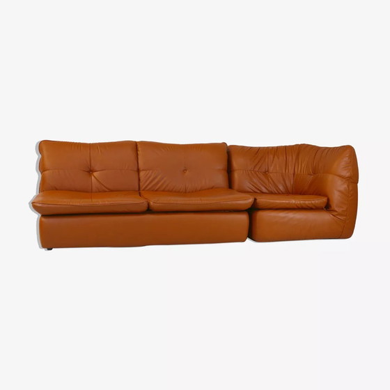 Dimensioni: H85 x L245 x P95 Colore: Arancione Materiali: Similpelle Stile: Design Divano in similpelle "Caramel". Trasformabile. Francia, circa 1990. 1 divano a 2 posti trasformabile in letto più 1 poltrona angolare. Similpelle morbida. Molto confortevole. Usura minima (2 o 3 fori insignificanti su 1 lato posteriore, vedi foto). Ottime condizioni. Design morbido e caldo. Divano a 2 posti, lunghezza 160 cm. Poltrona angolare 85x85 cm.