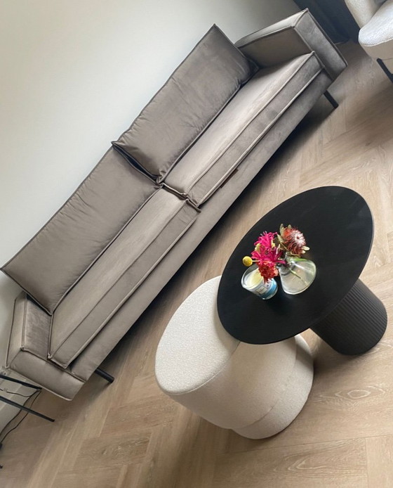 Bellissimo divano in velluto color tortora a quattro posti. Il divano è largo 261 cm ed è in ottime condizioni. Un'aggiunta elegante e confortevole al tuo soggiorno!