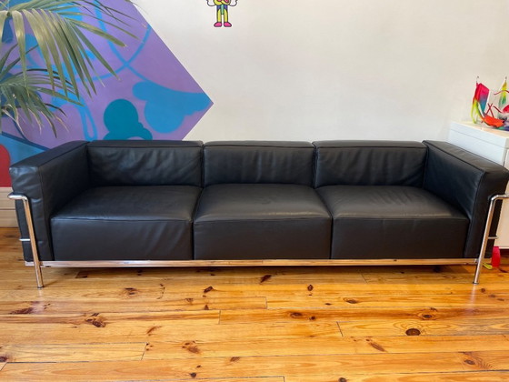 Icona assoluta del design modernista, questo divano a tre posti LC3 è un pezzo iconico dell'arredamento del XX secolo, progettato nel 1928 da Le Corbusier, Charlotte Perriand e Pierre Jeanneret.