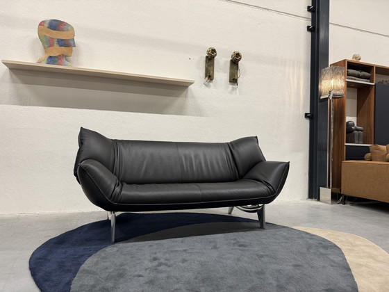 Come nuovo, il divano a 3 posti Leolux Tango è rifinito in pelle nera. I braccioli regolabili offrono infinite possibilità.