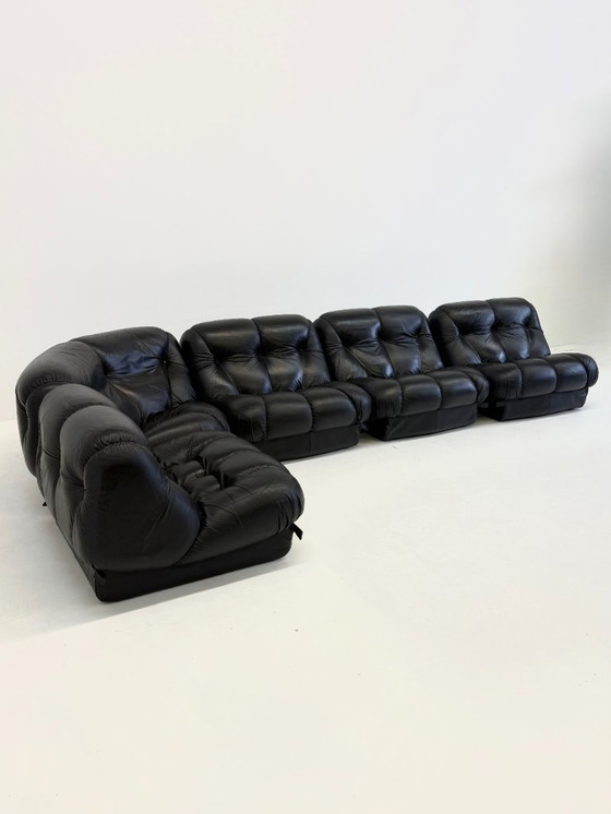 Divano lounge componibile Nuvolone in pelle nera Rino Maturi per Mimo Padova