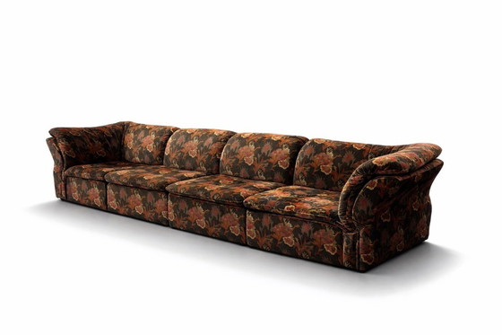 Immergiti nel fascino degli anni '70 con questo splendido divano modulare vintage. Con il suo ricco e audace motivo floreale, questo divano dona un tocco di eleganza retrò a qualsiasi ambiente. Il suo design modulare offre flessibilità e comfort, perfetto sia per spazi ampi che piccoli. Lasciati avvolgere dai morbidi cuscini effetto velluto e goditi uno stile senza tempo che non passa mai di moda. Normali segni di usura dovuti al tempo.