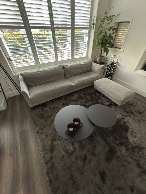 Questo splendido divano con eleganti finiture tessili grigie, disegnato da Gijs Papavoine, si inserisce senza sforzo in qualsiasi salotto, offrendo un look chic e invitante, perfetto per rilassarsi o per intrattenere gli ospiti.
