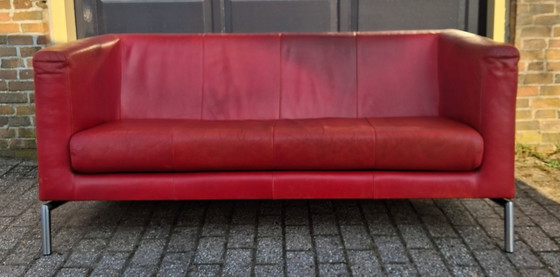 Scoprite l'eleganza moderna del divano e della poltrona Montis Kubik a 2,5 posti, un complemento perfetto per qualsiasi interno contemporaneo. Rivestiti in pregiata pelle rossa, questi elementi d'arredo coniugano stile e comfort, offrendo un luogo accogliente dove rilassarsi.