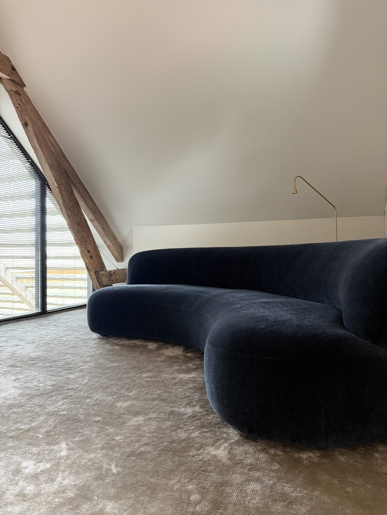 Divano 280 di Pierre Augsutin Rose. Acquistato nuovo presso lo showroom. Non ha subito danni ed è in ottime condizioni. Il colore è blu scuro in velluto di mohair.