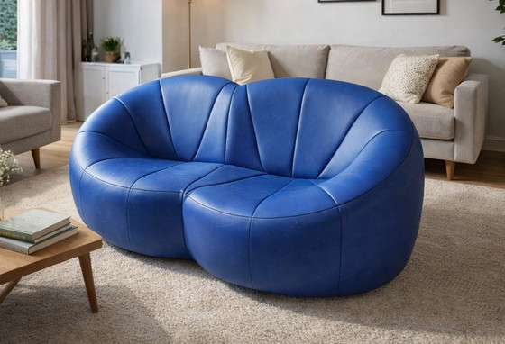 Il divano a due posti "Pumpkin" di Pierre Paulin è un pezzo iconico del design prodotto da Ligne Roset. Questo divano in lana blu uovo d'anatra incarna eleganza e comfort, perfetto per aggiungere un tocco di raffinatezza ai vostri interni.