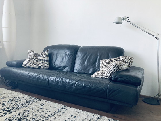 Questo è un divano in pelle nera molto attraente di ROLF BENZ, noto per il suo design elegante e di alta qualità. Il divano può ospitare comodamente da 3 a 5 persone e presenta un aspetto elegante e moderno. La pelle è in ottime condizioni, con solo piccole pieghe che aggiungono carattere. È un'aggiunta perfetta a qualsiasi spazio abitativo contemporaneo, offrendo comfort ed eleganza.