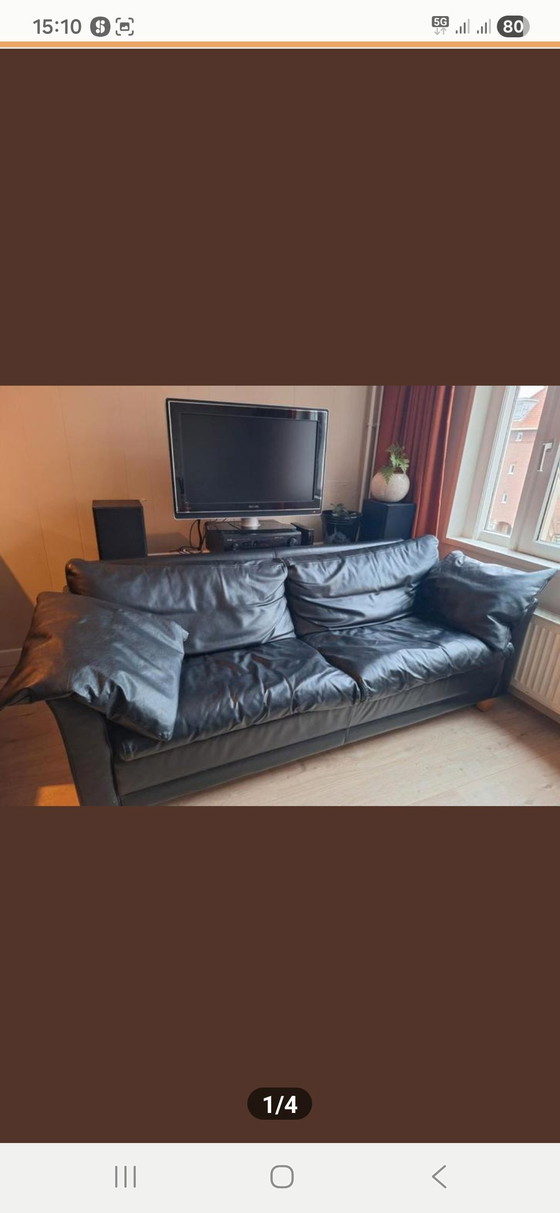 Ecco l'elegante divano Touché in pelle nera, perfetto per qualsiasi soggiorno moderno. Le sue linee pulite e i comodi cuscini emanano eleganza.