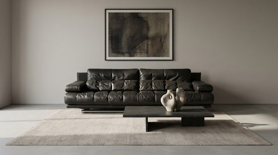 La pelle nera conferisce al divano una presenza forte ed elegante, mentre la generosa imbottitura garantisce una seduta rilassante e confortevole. I raffinati dettagli cromati ne sottolineano il carattere moderno e gli conferiscono un aspetto pulito e architettonico.