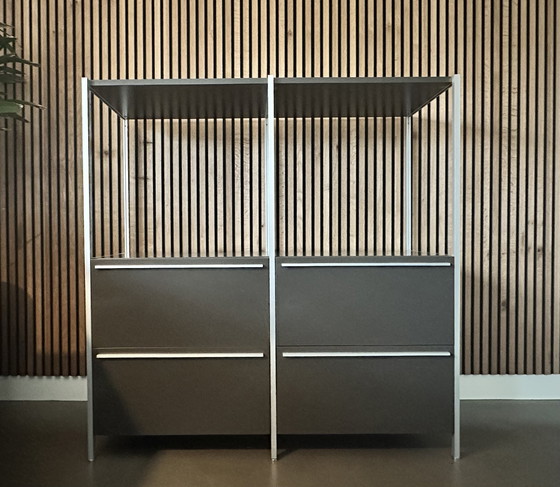 Vi presentiamo la credenza Matrix di Pastoe, un perfetto connubio tra stile e funzionalità. Questo mobile moderno è progettato per completare qualsiasi interno contemporaneo con le sue linee eleganti e l'estetica minimalista. La combinazione di tonalità marrone e argento aggiunge un tocco sofisticato, rendendola un'aggiunta versatile al vostro spazio abitativo.